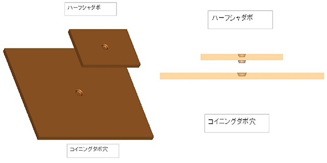 そこで、当社ではコイニングやハーフシャー、加工穴等を用いて正確な位置決めをすることで加工時間を短く保ちながら、高品質の精密板金加工品の提供が可能となっています。具体的には、板金加工品の仕上がり条件に応じて位置決め方法を変更しており、表面の条件が厳しい場合はコイニング+ハーフシャーで、条件が厳しくない場合は穴+ハーフシャーという方法で行っています。これにより組立時における位置合わせが楽になり、加工時間の短縮が可能となります。
