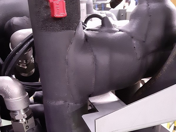 銅配管が組付けられる精密空調機器などには、小径の配管としてフレキブルチューブが採用されるケースもあります。その際、用途に応じてフレキブルチューブに断熱材を巻く場合も見られます。この断熱材の厚みを考慮して機器の設計を行わないと、筐体の板金部品に断熱材が触れてしまい、機器の使用に伴う振動で断熱材が破損してしまうリスクがあります。これにより機器の品質が大きく損なわれしまうことになります。