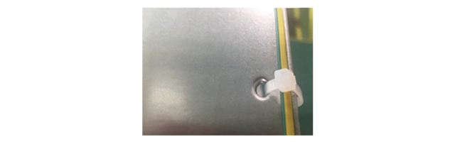 電気配線固定用の金具を、インシュロックへ変更することでコストダウンを行うことができます。電線を固定するだけの目的であれば、図のようなインシュロックを使って固定するだけで十分に機能を満たすことができます。電気配線を固定する目的は主に、①配線の絡みの防止、②作業者の安全性の確保、③作業性の向上などが挙げれますが、いずれも大きなトルクや強く固定することを必要とするものではありません。目的に合わせて、配線の固定方法を変えることでコストダウンへ繋げることができます。