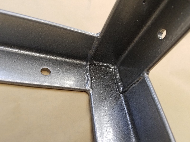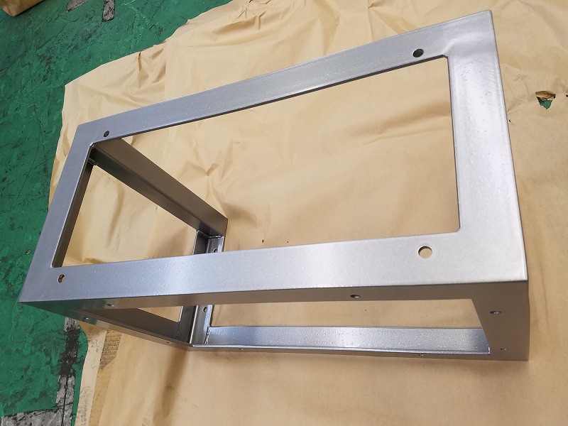 この写真はサニタリー製品に分類される、人工大理石シンク用の架台です。この架台に沿うよう人工大理石を設置することで完成品となり、キッチンや洗面所などに使用されます。 当社ではこの製品について、SS400を切断、ノッチおよびピアス加工を施し、溶接を行うという流れで製作をしております。またこの製品については塗装を行ってから出荷をしておりますが、その際マスキングはせずにそのまま塗装を行っております。このような精密板金加工品については、ぜひ一度精密板金加工 配線組立.comへご相談ください。