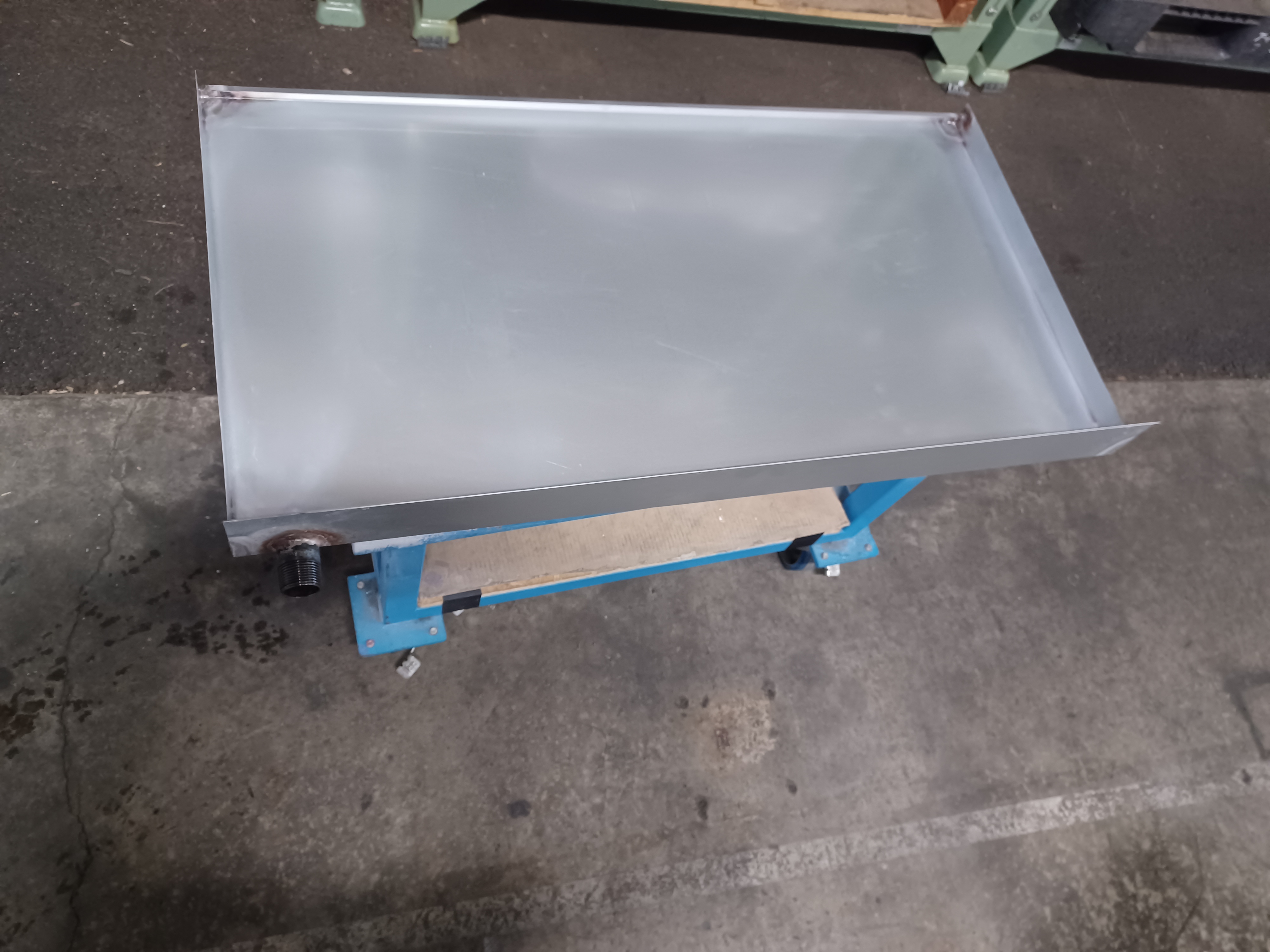 こちらは工作機械や産業機械で主に使用されるドレンパンです。サイズは40×960×525mmで、機械・装置で発生した水滴(ドレン)を貯める板金部品です。