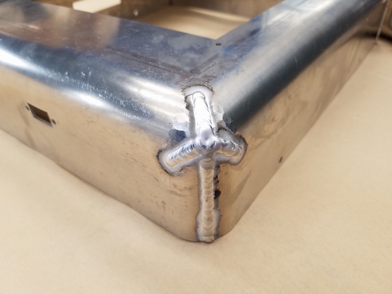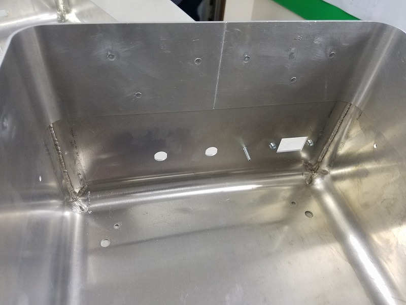 この写真は、レントゲンカメラを格納するためのアルミ製筐体です。ファイバーレーザーによる穴あけ加工、曲げ加工、プレス加工、カシメ加工、および溶接仕上げを施して製作しております。