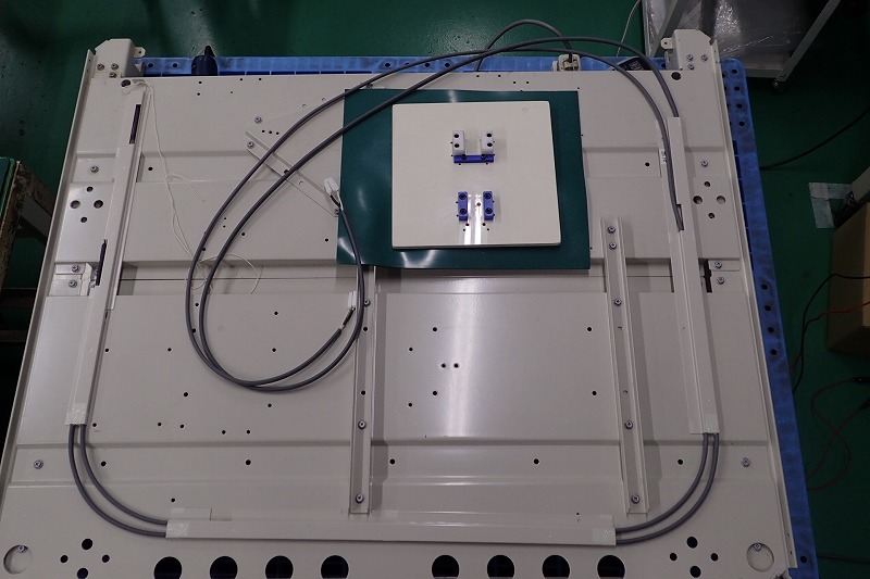 この製品の製造において、精密板金加工 配線組立.comでは、精密板金加工から耐圧・動作確認、梱包まで一貫して対応しております。配線をまとめている白い部品は当社で精密板金加工と塗装を行っているものです。動作確認ではヒーター発熱部が正常な温度となっているかを、冶具を取り付けた上で通電を行って確認作業を行っています。このように当社では精密板金加工から通電チェックまでワンストップで生産対応いたしますので、お困りの方はお気軽にご相談ください。