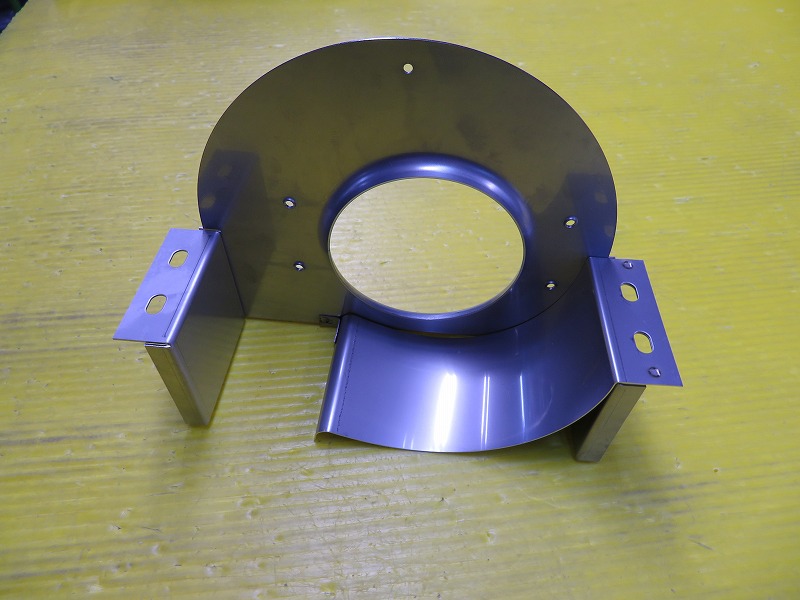 この精密板金加工品は、試薬・医薬品などを冷蔵保存できる、医療用保存機器など使用される換気扇用のカバーとなります。材質はSUS304で4部品で構成されています。