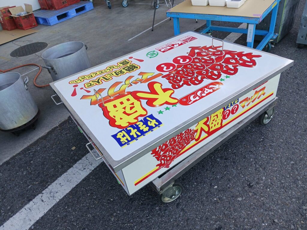 食品を取り扱うため、衛生面に配慮し、SUS304を使用しています。また、焼きそばのお湯を抜く工程のために、底面にパイプを溶接しております。