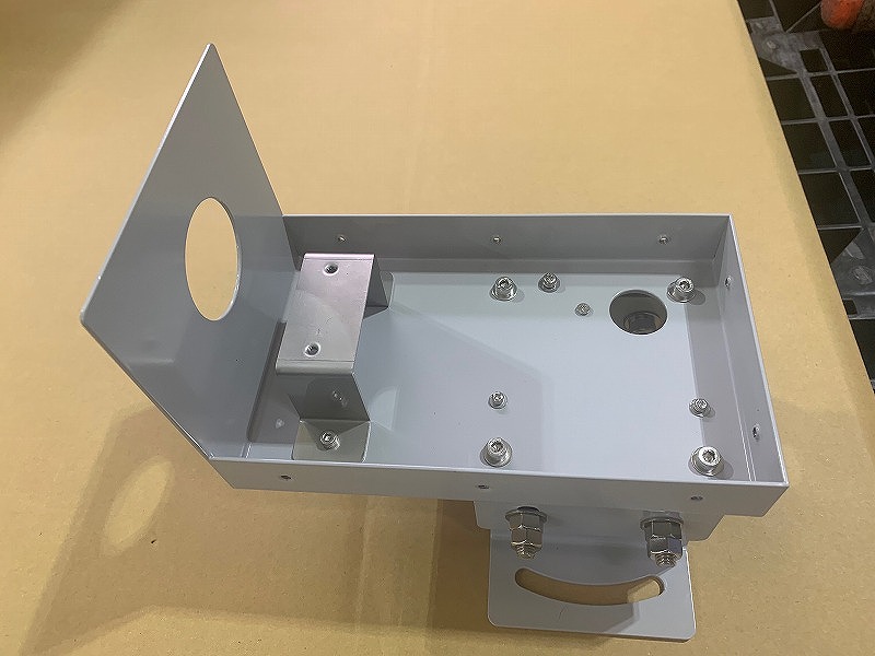 この製品は、屋外にて使用するセンサーを収納するケースの精密板金加工組立品となります。