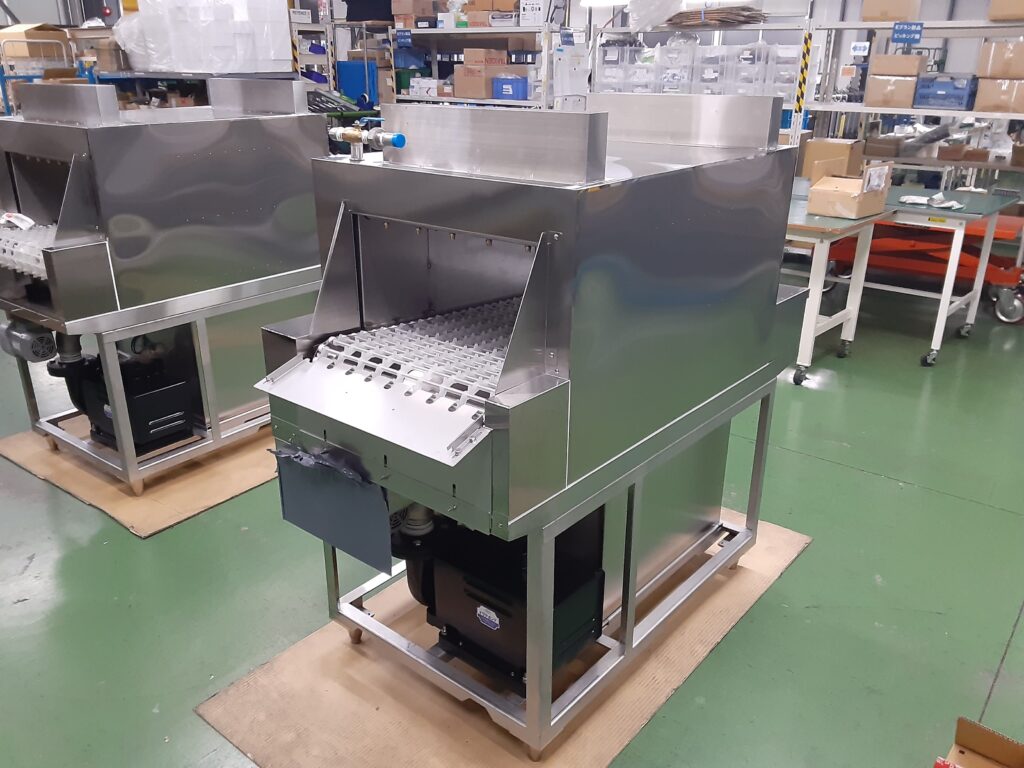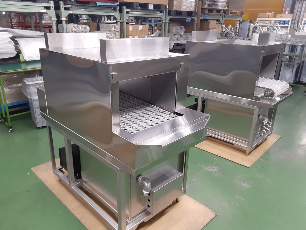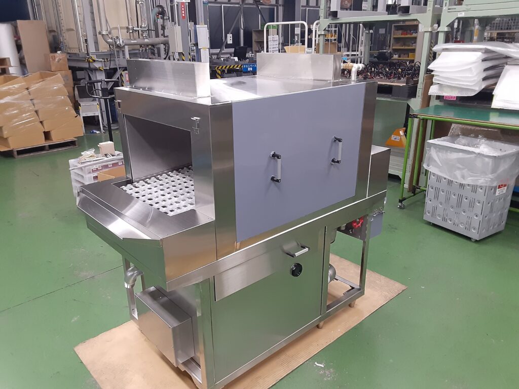業務用食洗器が搭載されるお店のサイズによって微妙にサイズが異なるのですが、試作開発段階から携わらせていただいたため、細部の調整機能を含めた板金設計を施すことで、量産生産できるようにいたしました。また温水については、ガスでも電気でもどちらでも設計から製造対応まで対応いたします。