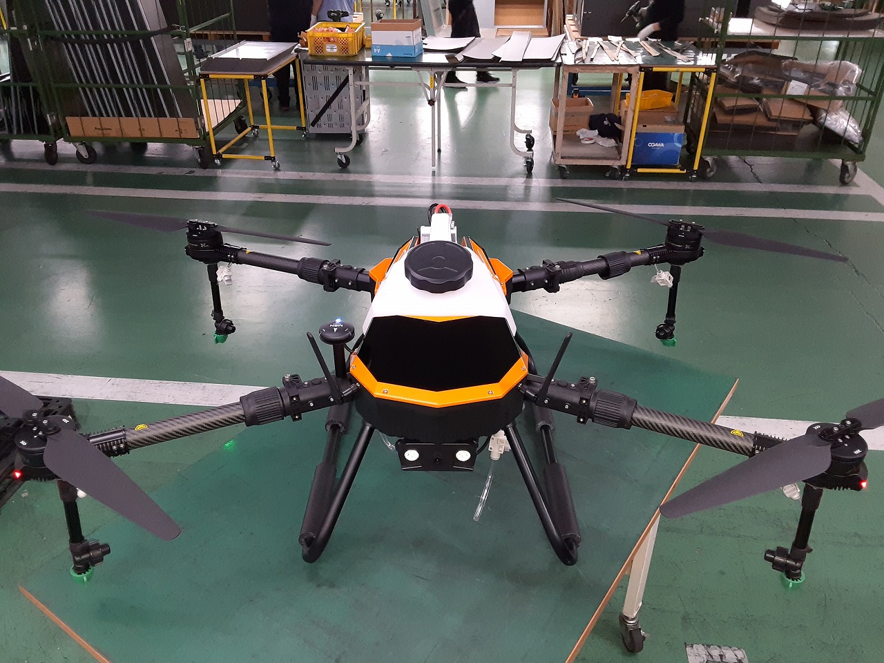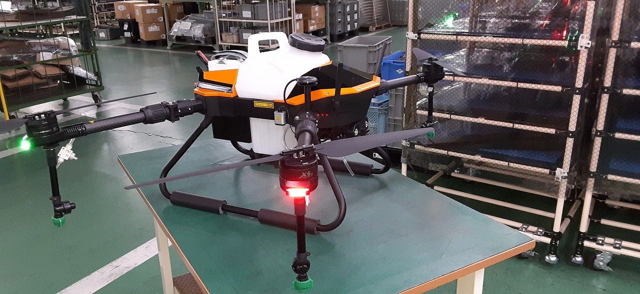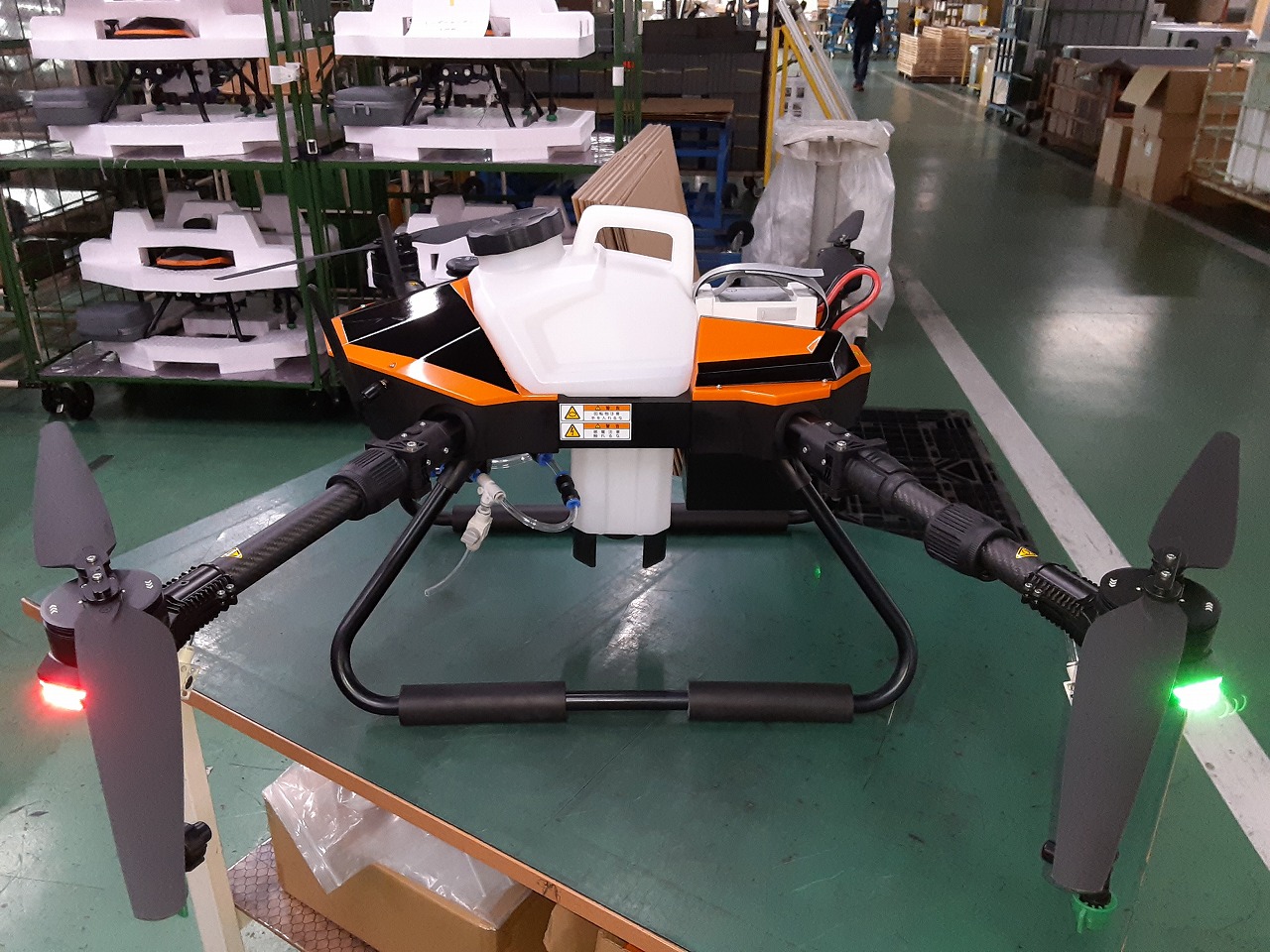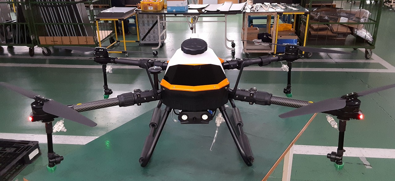 こちらは、農薬散布のために使用されるドローンのOEM組立事例です。骨組みがカーボン、その他がプラスチックで構成されており、当社ではOEM組立対応を行いました。