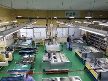 精密板金加工 配線組立.comでは電気機器、温調機器などの製品の OEM 生産を得意としています。 特に 空気や液体といった物の漏れが発生してはいけないような製品については、メーカー様から非常に高い評価を得ており、20年以上にわたって OEM 生産を続けさせていただいております。2M近くの大型装置の量産組立に十分なだけの十分なスペースがあり、小型のコンプレッサーやチラーであればそれぞれ月産数百台の規模で生産を行うことができます。実際に現在はそれぞれのお客様ごとに複数品目の製品を月産数十台から数百台単位でOEM生産を行っており、1カ月の総生産台数は大小の機器を合わせて1000台を超えます。このようなOEM製造は電気・電子関係等、ソフト的な面が強い会社が派生的に行っていることが多いのですが、島田工業の場合は板金加工を創業としており、ハード面に強い会社であるということができます。特に組立精度が必要な製品や、溶接品質が重要な製品のOEM先としてお客様から選ばれることが多くなっています。
